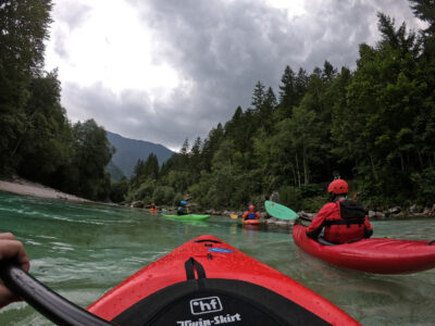 Stolze 14 Teilnehmer*Innen zog es vom 24.07.- 31.07.21 mal wieder an die türkisfarbenen Fluten der Soča. Wörtlich mit Kind und Kegel; vom blutigen Anfänger bis zum versierten Routinier war alles auf dem Wasser. Wir haben fleißig geübt, getestet und gefachsimpelt, nette Gespräche am Lagerfeuer und beim gemeinsamen Kochen inklusive. Von Sonnenschein bis Hagel war das Wetter etwas durchwachsen, was uns unter Flos Tarp aber wenig gestört hat.